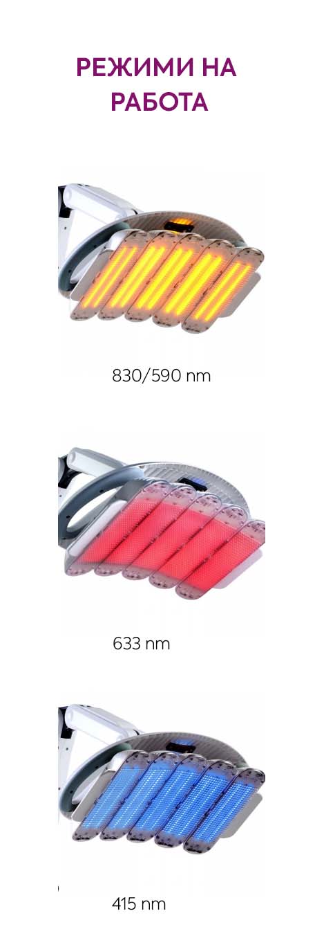 Системата използва светодиодна (LLLT-LED) технология, която ефективно третира физически травми, облекчава болка и скованост в мускулите и ставите, третира активно акне, подмладява кожата и стимулира разстежа на косата.