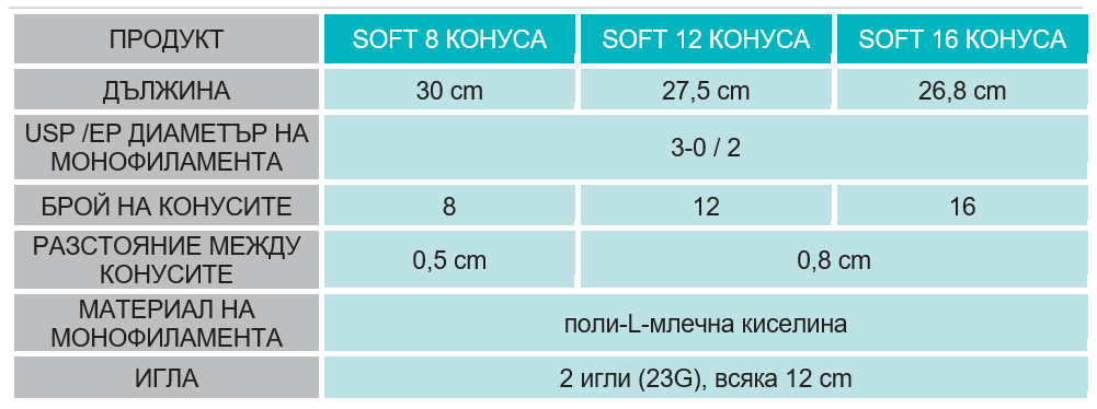 Silhouette Soft са иновативни резорбируеми повдигащи конци с уникална технология с конуси. Silhouette Soft се използват за терапия на увиснала кожа в средната и долната част на лицето, шията и веждите. Налични са три разновидности на продукта с цел третиране на различни области и степени на отпуснатост на кожата.